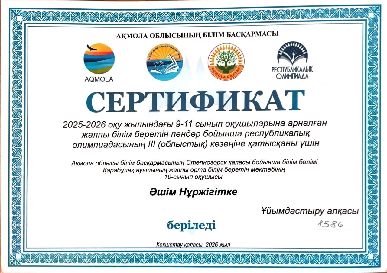 Коммунальное государственное учреждение "Общеобразовательная школа села Карабулак отдела образования по городу Степногорск управления образования Акмолинской области"