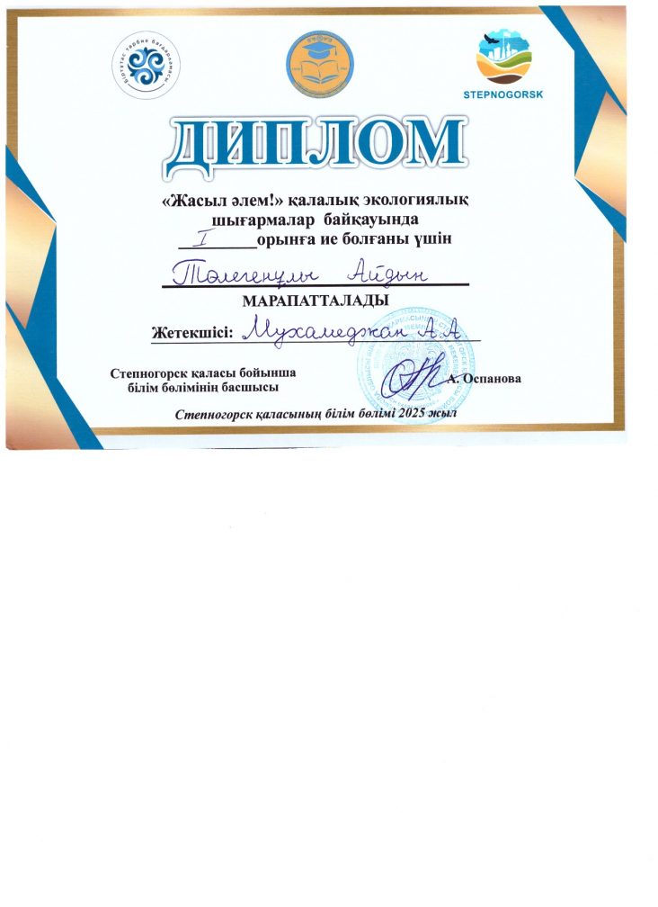 Төлегенұлы А. Жасыл әлем 1 орын 2025 ж